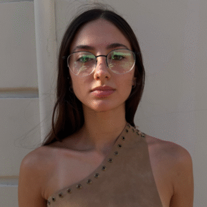 Diseño half-rim (media montura) con lentes grandes y forma aviador suave/redondeada: perfecta para maximizar el campo visual, aligerar el rostro y dar un vibe intelectual moderno con un toque effortless chic. Ideal para quienes buscan versatilidad sin peso ni marcas visibles.